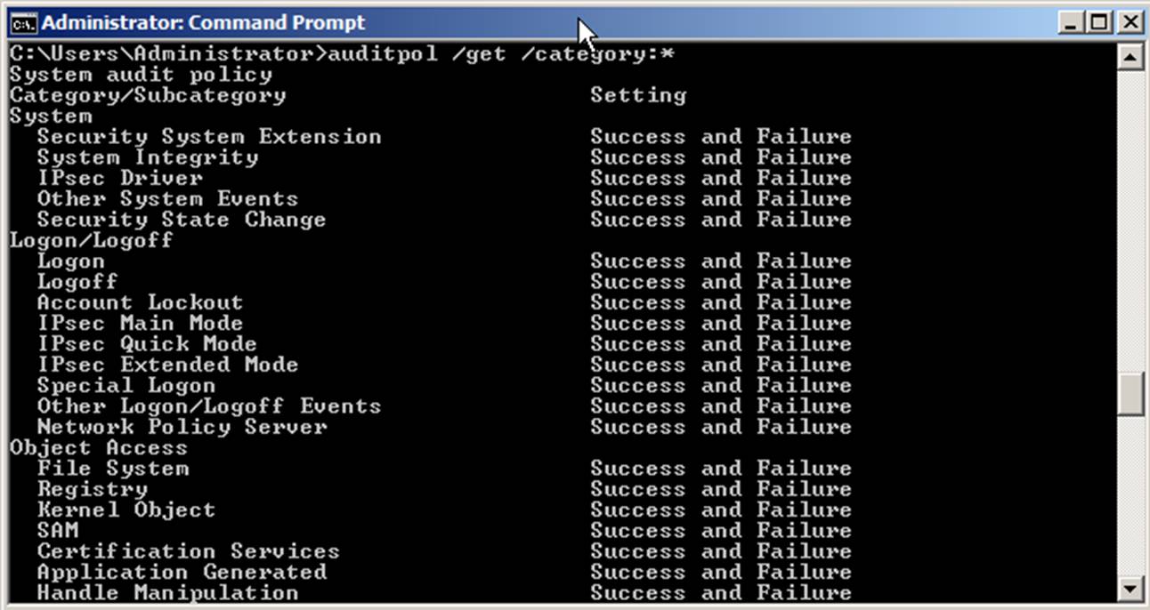 alone to determine what is being audited. The Auditpol command will tell you