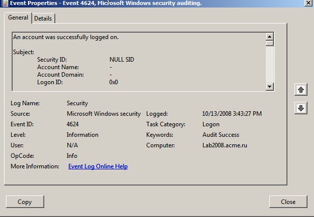 account lockouts, and changes to security settings—are Success events.