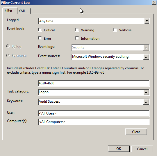 - Audit logon events