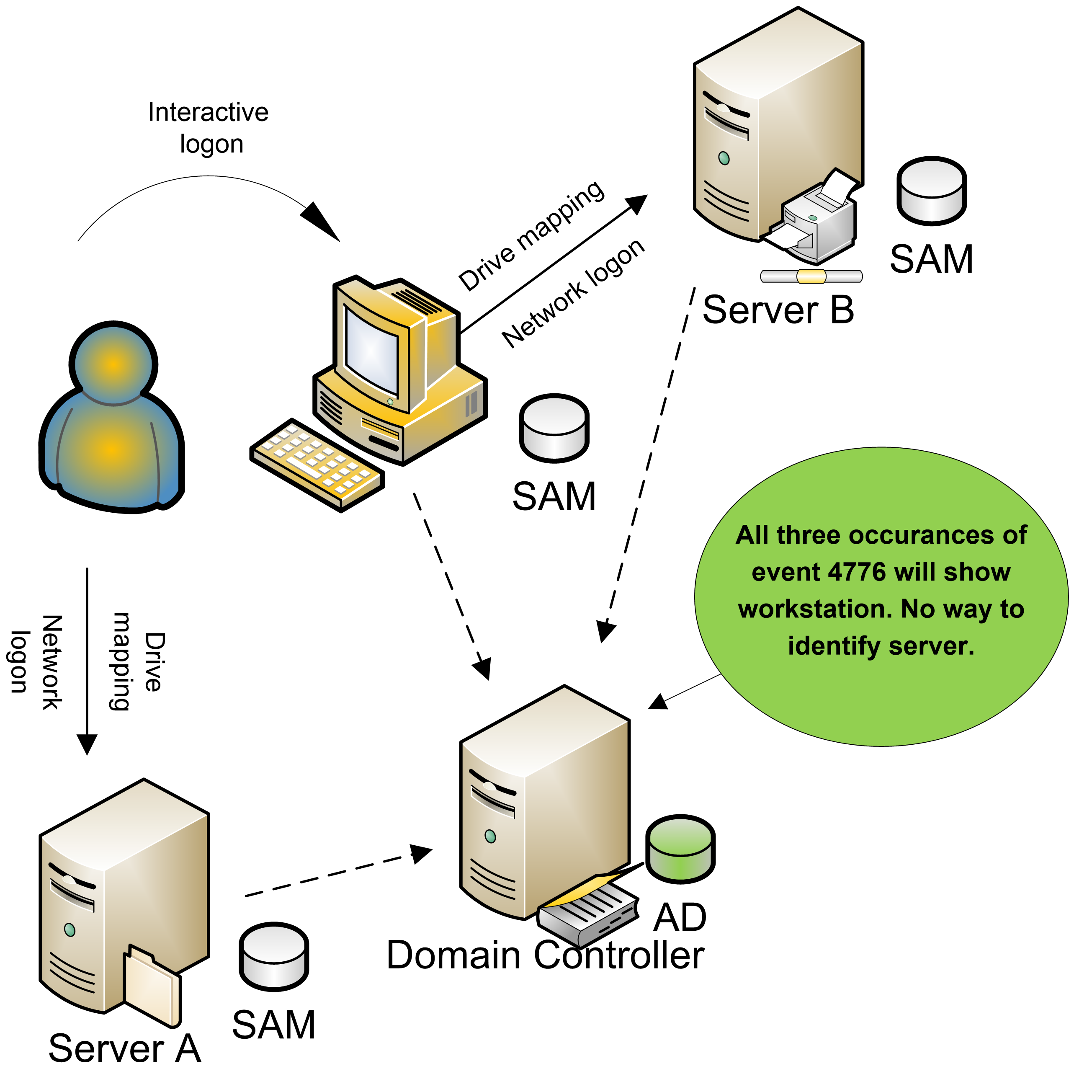 authentic, the computer first tries to contact the DC via Kerberos. (If the