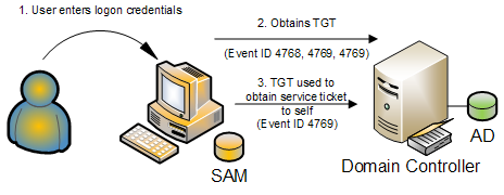 Kerberos Ticket Granting Tickets (TGT); produces events